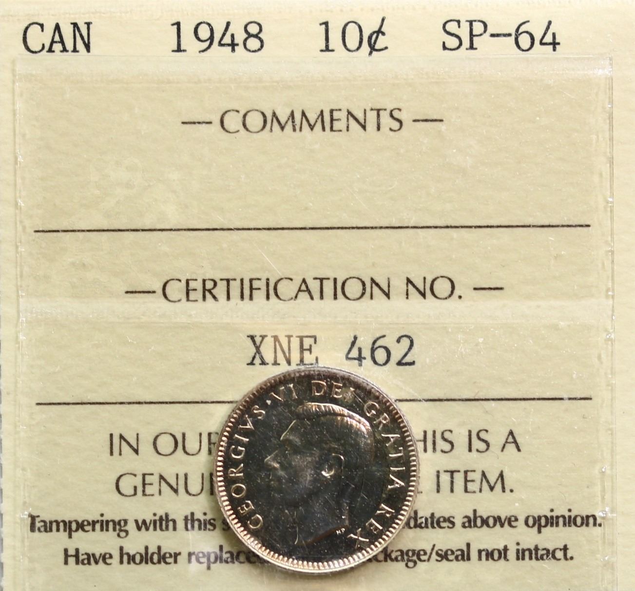 1948 10¢ ICCS Choice SPECIMEN-64. A nice example with reflective surfaces.
