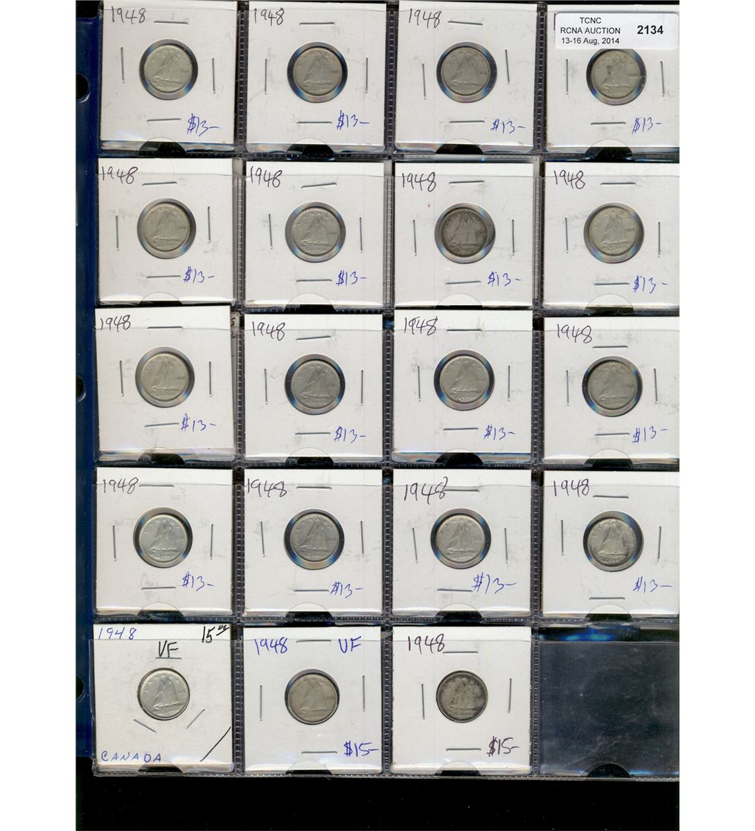1948 10¢. Lot of 24 pcs average F12 grade.