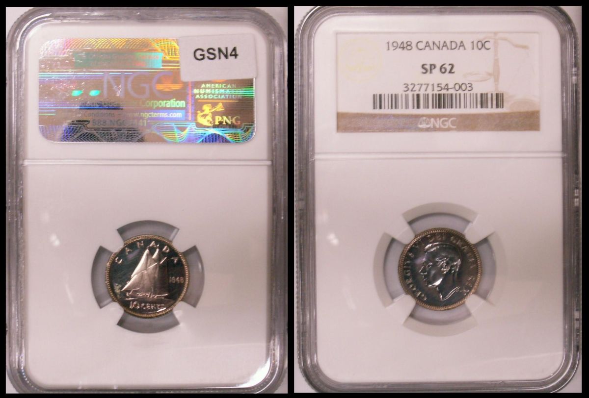 1948 10¢ NGC SP62. Attractive bluish tint. (Only 30 sets minted)