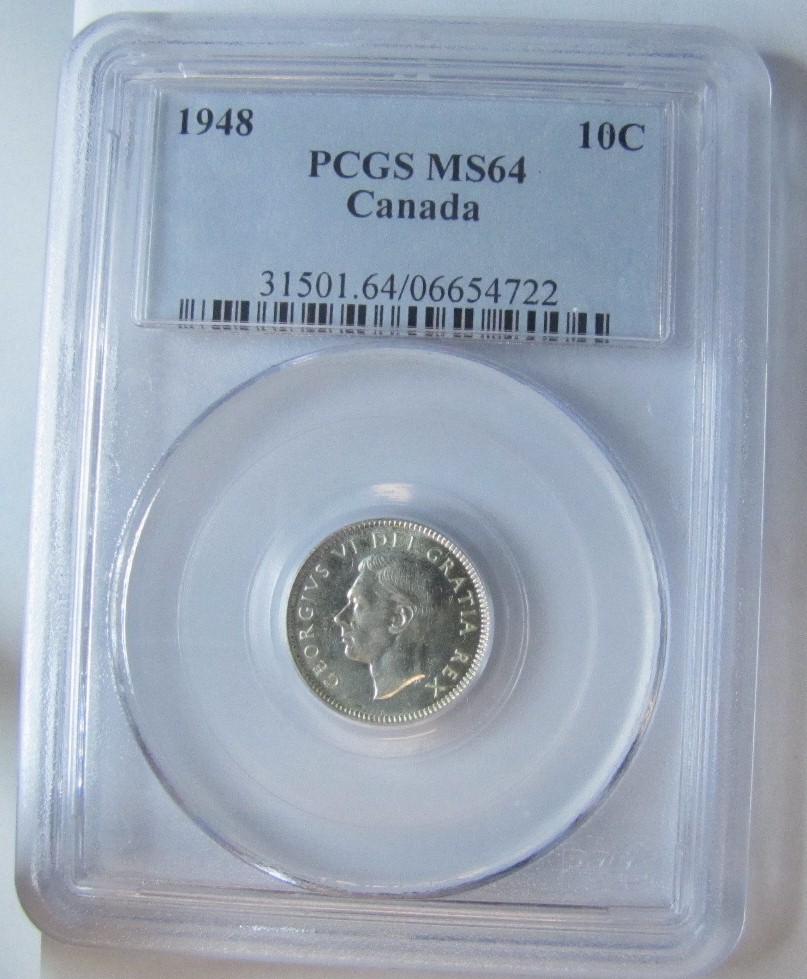 1948 10¢ PCGS MS64. Brilliant and lustrous.
