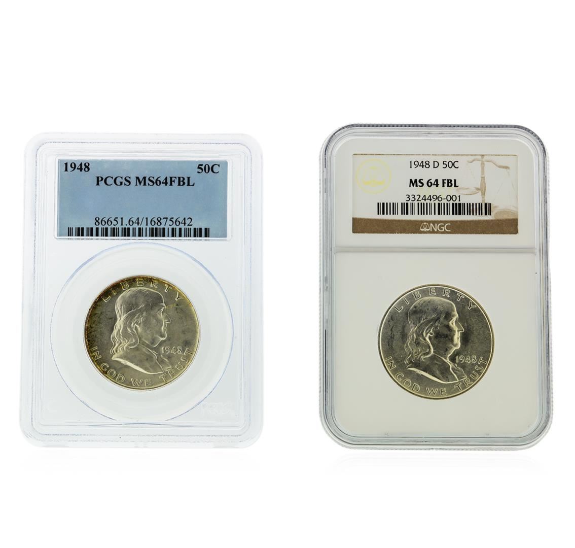 One 1948 & 1948-D Franklin Half Dollar NGC/PCGS Graded MS64FBL. NGC Certified.