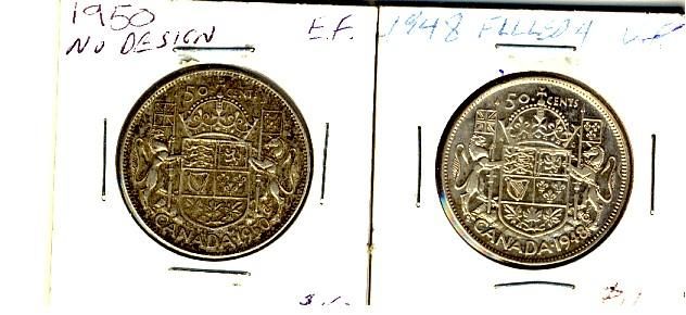 1948 & 1950 No Des 50¢. Lot of 2 coins Fine to VF.
