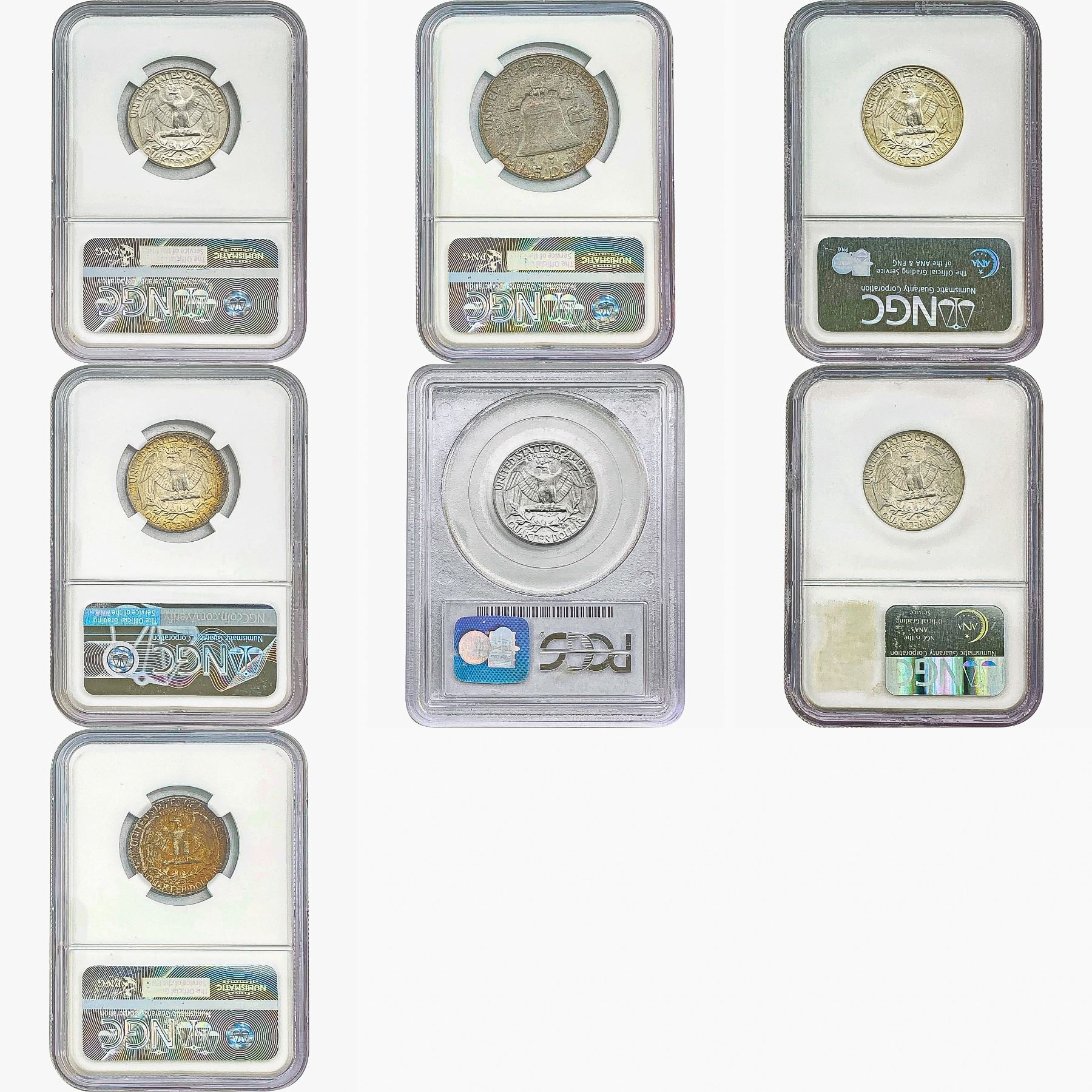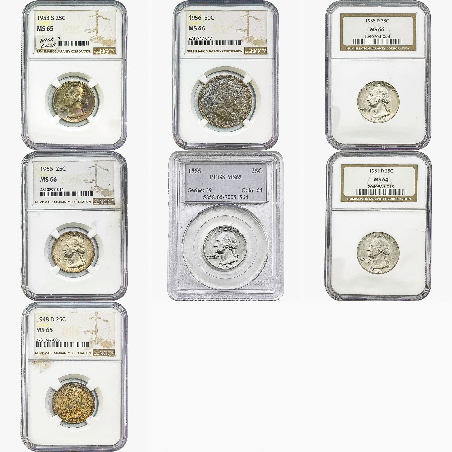 1948-1958 Gem BU Washington Quarter/Frankling Half Dollar Lot [7 Coins] PCGS/NGC MS64/66