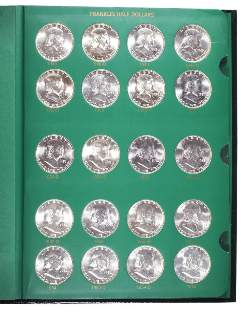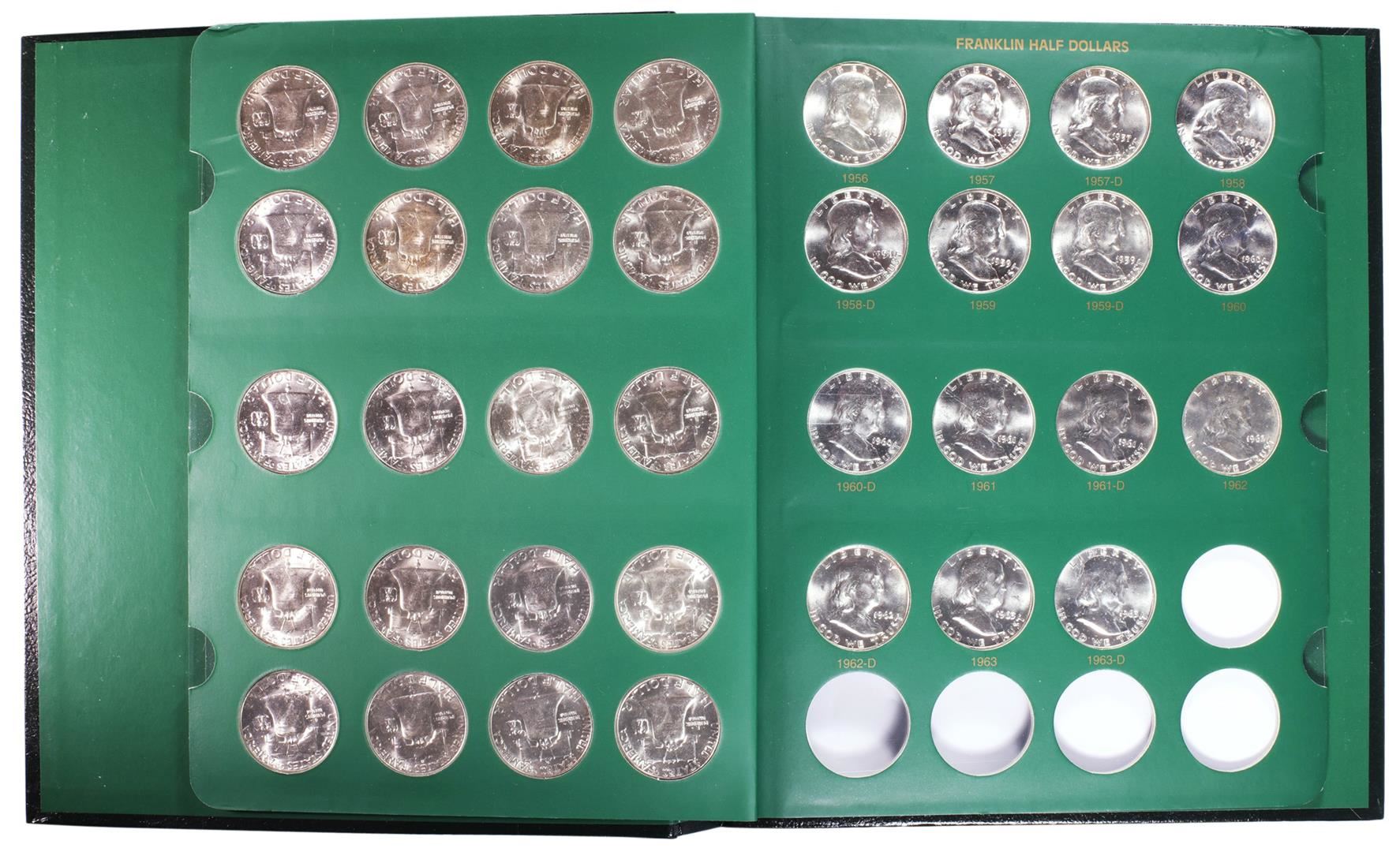 1948-1963 Brilliant Uncirculated Franklin Half Dollar Coins in Coin Collector Album