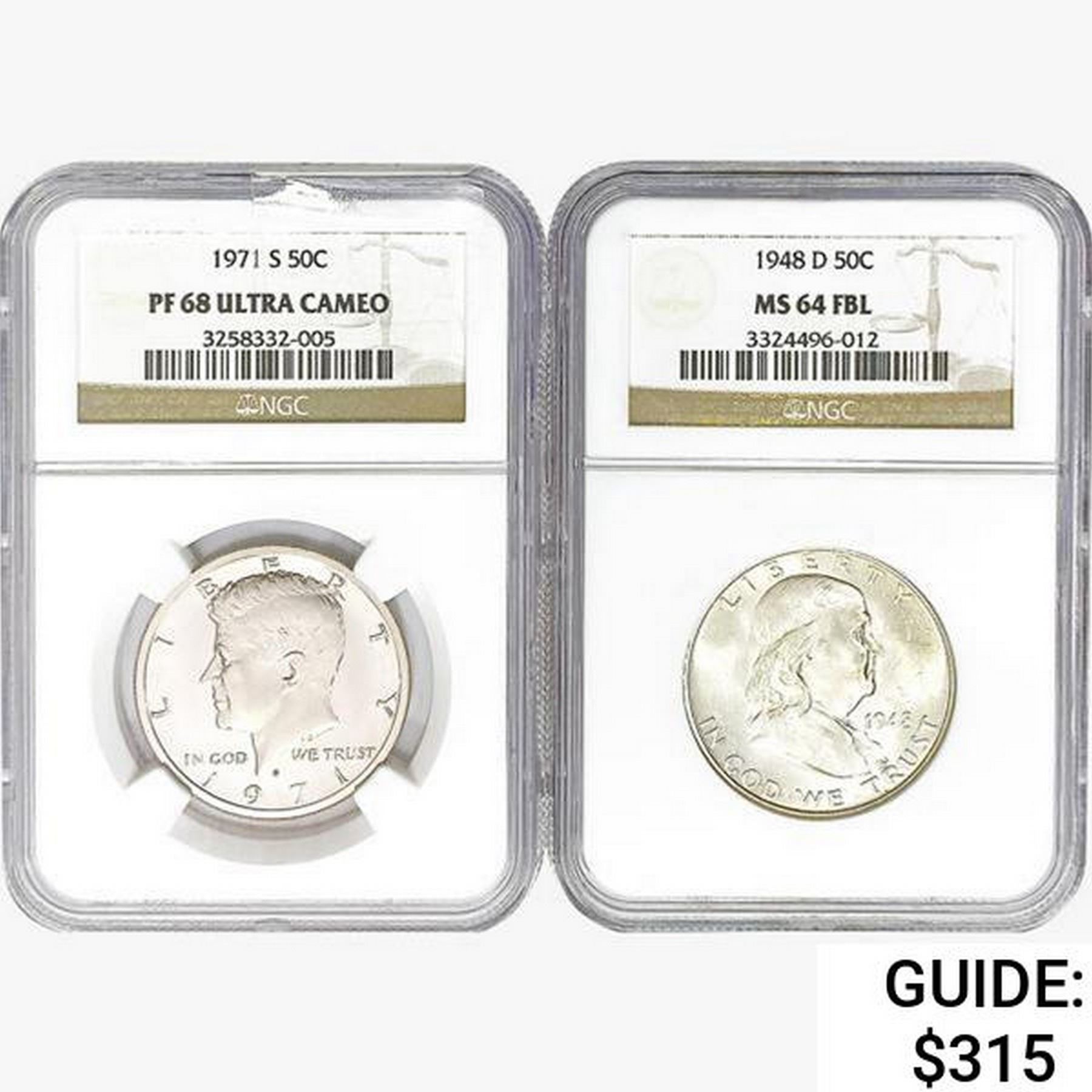 1948&1971 [2] Silver Half Dollars NGC MS/PF