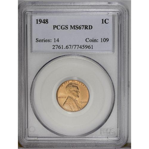 1948 1C MS67 Red PCGS. A boldly struck, pristine Super