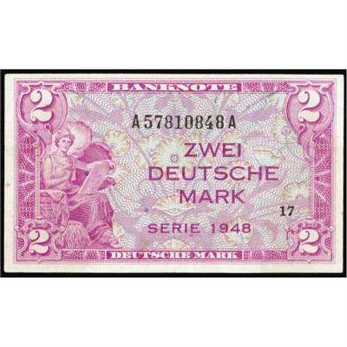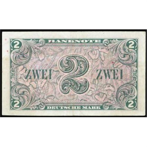 <style type="text/css"> body, td, th { font-family: Arial, Helvetica, sans-serif; font-size: 12px; color: #482424; margin: 0px; padding: 0px; } #header { background-image: url(http://www.bowersandmerena.com/ebay/images/template_v3_01.gif); clear: both; background-color: #590303; border-top-width: 2px; border-top-style: solid; border-top-color: #B38C4F; } #header #header_wrapper { height: 75px; clear: both; width: 800px; margin-right: auto; margin-left: auto; background-image: url(http://www.bowersandmerena.com/ebay/images/template_v3_03.gif); background-repeat: no-repeat; background-position: right; color: #F3EDCC; } #header #header_wrapper #header_logo { float: left; height: 75px; width: 444px; background-image: url(http://www.bowersandmerena.com/ebay/images/template_v3_02.gif); background-repeat: no-repeat; font-size: 10px; text-transform: capitalize; color: #B38C4F; } #header #header_wrapper #header_right { float: left; height: 75px; width: 356px; text-align: right; } #header #header_wrapper #header_right #headerLoginBtn { margin-bottom: 30px; } #header #header_wrapper #header_right input#txtSearch { color: #B49056; border: 1px solid #B49056; width: 175px; padding-top: 3px; padding-right: 3px; padding-bottom: 4px; padding-left: 3px; } #nav { height: 37px; background-image: url(http://www.bowersandmerena.com/ebay/images/template_v3_05.gif); clear: both; } #nav #nav_wrapper { height: 35px; width: 800px; margin-right: auto; margin-left: auto; border-left-width: 1px; border-left-style: solid; border-left-color: #B38C4F; } #nav #nav_wrapper a { padding-right: 15px; padding-left: 15px; border-right-width: 1px; border-right-style: solid; border-right-color: #B38C4F; height: 25px; padding-top: 10px; display: block; float: left; text-decoration: none; font-weight: bold; color: #5D0303; } #nav #nav_wrapper a:hover { color: #B38C4F; } #nav #nav_wrapper #search { float: right; padding-top: 7px; } #nav #nav_wrapper #search #txtSearch { font-family: Arial, Helvetica, sans-serif; font-size: 10px; text-transform: uppercase; color: #D2AE75; border: 1px solid #B38C4F; padding: 3px; } #content_bgd { background-image: url(http://www.bowersandmerena.com/ebay/images/template_v3_09.gif); background-repeat: repeat-y; background-position: center; padding-top: 15px; padding-bottom: 15px; background-color: #FBFBDB; } #content_wrapper { clear: both; height: auto; width: 800px; margin-right: auto; margin-left: auto; } .LotDetailWhite { line-height:normal; font-size:13px; font-family: arial,helvetica,sans-serif; color: White; font-weight: bold; } .LotDetailInformation { line-height:normal; font-size: 13px; font-family: arial,helvetica,sans-serif; } .LotDetailMessage { line-height:normal; font-size: 13px; font-family: arial,helvetica,sans-serif; color: red; } } tr.HeaderAuctionTitle td { color: #000000; font-weight: bold; padding: 2px; background-image: url(http://www.bowersandmerena.com/ebay/images/template_v3_05.gif); background-repeat: repeat-x; border-bottom-width: 1px; border-bottom-style: solid; border-bottom-color: #B38C4F; } table.AuctionSummary a, table.AuctionSummary a:link, table.AuctionSummary a:visited { color: #0000FF; text-decoration: none; } } td.tableHeaderLeft { border-left-width: 1px; border-left-style: solid; border-left-color: #B38C4F; } td.tableHeaderRight { border-right-width: 1px; border-right-style: solid; border-right-color: #B38C4F; } td.tableCellMiddle { border-left-width: 1px; border-left-style: solid; border-left-color: #B38C4F; border-right-width: 1px; border-right-style: solid; border-right-color: #B38C4F; padding: 5px; } tr.footer td { border-top-width: 1px; border-top-style: solid; border-top-color: #B38C4F; } </style> </head> <body> <div id="header"> <div id="header_wrapper"> <div id="header_logo"> </div> <div id="header_right"> </div> </div> </div> <div id="nav"> <div id="nav_wrapper"> <a href="http://www.bowersandmerena.com">Our eBayLive Auctions</a> <a href="#PaymentInfo">Payment Information</a> <a href="#ShippingInfo">Shipping Information</a> <a href="#About">About Bowers and Merena</a> </div> </div> <div id="content_bgd"> <div id="content_wrapper"> <table width="100%" border="0" cellpadding="5" cellspacing="0" class="AuctionSummary"> <tbody> <tr class="HeaderAuctionTitle" style="height: 25px;"> <td align="left" class="tableHeaderLeft" > </td> <td align="center" class="tableHeaderRight"> <span style="font-size: large;">Lot #2837. Germany Federal Republic. 1948 2 Deutsche Mark. US Army Command. XF-AU.</span> </td> </tr> <tr> <td colspan="3" class="tableCellMiddle"> P-3a. Another lovely note with terrific appeal and color. The note has minimal circulation and will surely be a great representation for the denomination.
