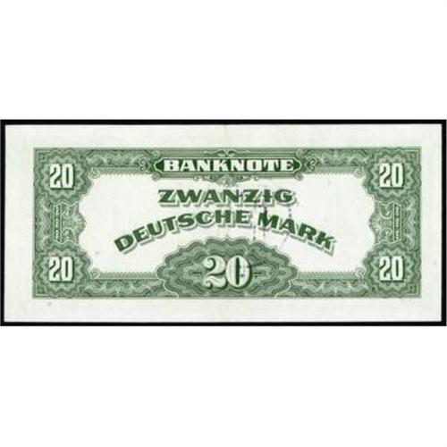 <style type="text/css"> body, td, th { font-family: Arial, Helvetica, sans-serif; font-size: 12px; color: #482424; margin: 0px; padding: 0px; } #header { background-image: url(http://www.bowersandmerena.com/ebay/images/template_v3_01.gif); clear: both; background-color: #590303; border-top-width: 2px; border-top-style: solid; border-top-color: #B38C4F; } #header #header_wrapper { height: 75px; clear: both; width: 800px; margin-right: auto; margin-left: auto; background-image: url(http://www.bowersandmerena.com/ebay/images/template_v3_03.gif); background-repeat: no-repeat; background-position: right; color: #F3EDCC; } #header #header_wrapper #header_logo { float: left; height: 75px; width: 444px; background-image: url(http://www.bowersandmerena.com/ebay/images/template_v3_02.gif); background-repeat: no-repeat; font-size: 10px; text-transform: capitalize; color: #B38C4F; } #header #header_wrapper #header_right { float: left; height: 75px; width: 356px; text-align: right; } #header #header_wrapper #header_right #headerLoginBtn { margin-bottom: 30px; } #header #header_wrapper #header_right input#txtSearch { color: #B49056; border: 1px solid #B49056; width: 175px; padding-top: 3px; padding-right: 3px; padding-bottom: 4px; padding-left: 3px; } #nav { height: 37px; background-image: url(http://www.bowersandmerena.com/ebay/images/template_v3_05.gif); clear: both; } #nav #nav_wrapper { height: 35px; width: 800px; margin-right: auto; margin-left: auto; border-left-width: 1px; border-left-style: solid; border-left-color: #B38C4F; } #nav #nav_wrapper a { padding-right: 15px; padding-left: 15px; border-right-width: 1px; border-right-style: solid; border-right-color: #B38C4F; height: 25px; padding-top: 10px; display: block; float: left; text-decoration: none; font-weight: bold; color: #5D0303; } #nav #nav_wrapper a:hover { color: #B38C4F; } #nav #nav_wrapper #search { float: right; padding-top: 7px; } #nav #nav_wrapper #search #txtSearch { font-family: Arial, Helvetica, sans-serif; font-size: 10px; text-transform: uppercase; color: #D2AE75; border: 1px solid #B38C4F; padding: 3px; } #content_bgd { background-image: url(http://www.bowersandmerena.com/ebay/images/template_v3_09.gif); background-repeat: repeat-y; background-position: center; padding-top: 15px; padding-bottom: 15px; background-color: #FBFBDB; } #content_wrapper { clear: both; height: auto; width: 800px; margin-right: auto; margin-left: auto; } .LotDetailWhite { line-height:normal; font-size:13px; font-family: arial,helvetica,sans-serif; color: White; font-weight: bold; } .LotDetailInformation { line-height:normal; font-size: 13px; font-family: arial,helvetica,sans-serif; } .LotDetailMessage { line-height:normal; font-size: 13px; font-family: arial,helvetica,sans-serif; color: red; } } tr.HeaderAuctionTitle td { color: #000000; font-weight: bold; padding: 2px; background-image: url(http://www.bowersandmerena.com/ebay/images/template_v3_05.gif); background-repeat: repeat-x; border-bottom-width: 1px; border-bottom-style: solid; border-bottom-color: #B38C4F; } table.AuctionSummary a, table.AuctionSummary a:link, table.AuctionSummary a:visited { color: #0000FF; text-decoration: none; } } td.tableHeaderLeft { border-left-width: 1px; border-left-style: solid; border-left-color: #B38C4F; } td.tableHeaderRight { border-right-width: 1px; border-right-style: solid; border-right-color: #B38C4F; } td.tableCellMiddle { border-left-width: 1px; border-left-style: solid; border-left-color: #B38C4F; border-right-width: 1px; border-right-style: solid; border-right-color: #B38C4F; padding: 5px; } tr.footer td { border-top-width: 1px; border-top-style: solid; border-top-color: #B38C4F; } </style> </head> <body> <div id="header"> <div id="header_wrapper"> <div id="header_logo"> </div> <div id="header_right"> </div> </div> </div> <div id="nav"> <div id="nav_wrapper"> <a href="http://www.bowersandmerena.com">Our eBayLive Auctions</a> <a href="#PaymentInfo">Payment Information</a> <a href="#ShippingInfo">Shipping Information</a> <a href="#About">About Bowers and Merena</a> </div> </div> <div id="content_bgd"> <div id="content_wrapper"> <table width="100%" border="0" cellpadding="5" cellspacing="0" class="AuctionSummary"> <tbody> <tr class="HeaderAuctionTitle" style="height: 25px;"> <td align="left" class="tableHeaderLeft" > </td> <td align="center" class="tableHeaderRight"> <span style="font-size: large;">Lot #2842. Germany Federal Republic. 1948 20 Deutsche Mark. US Army Command. About Uncirculated.</span> </td> </tr> <tr> <td colspan="3" class="tableCellMiddle"> P-6b. With great quality and a fully overprinted "B", this note will surely be a prize in any collection of German banknotes. The color is great and the quality is striking. After the 20 Deutsche Mark denomination the notes begin to get very scarce and will be a challenge for any collector to locate.