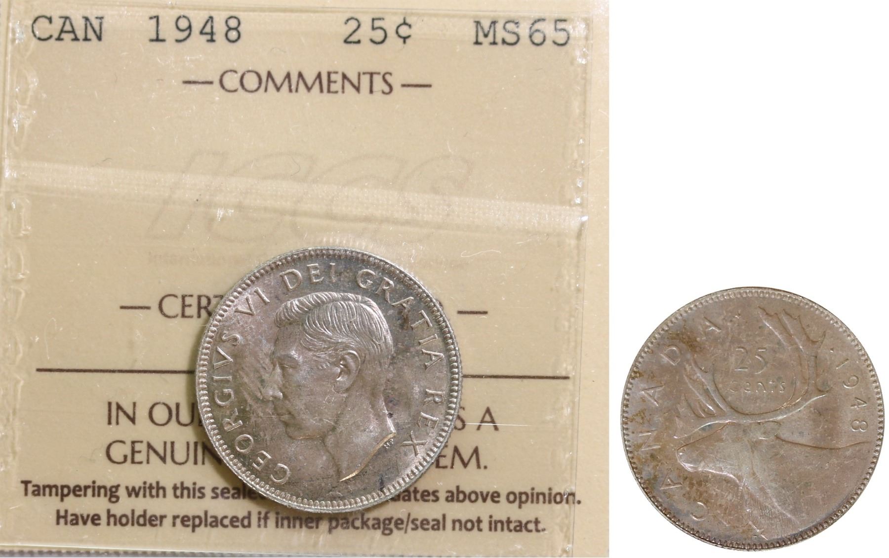 1948 25¢ ICCS Gem Mint State-65 Lustrous with nice russet tone over full underlying lustre.