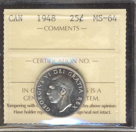 1948 25¢ ICCS MS64 brilliant and lustrous