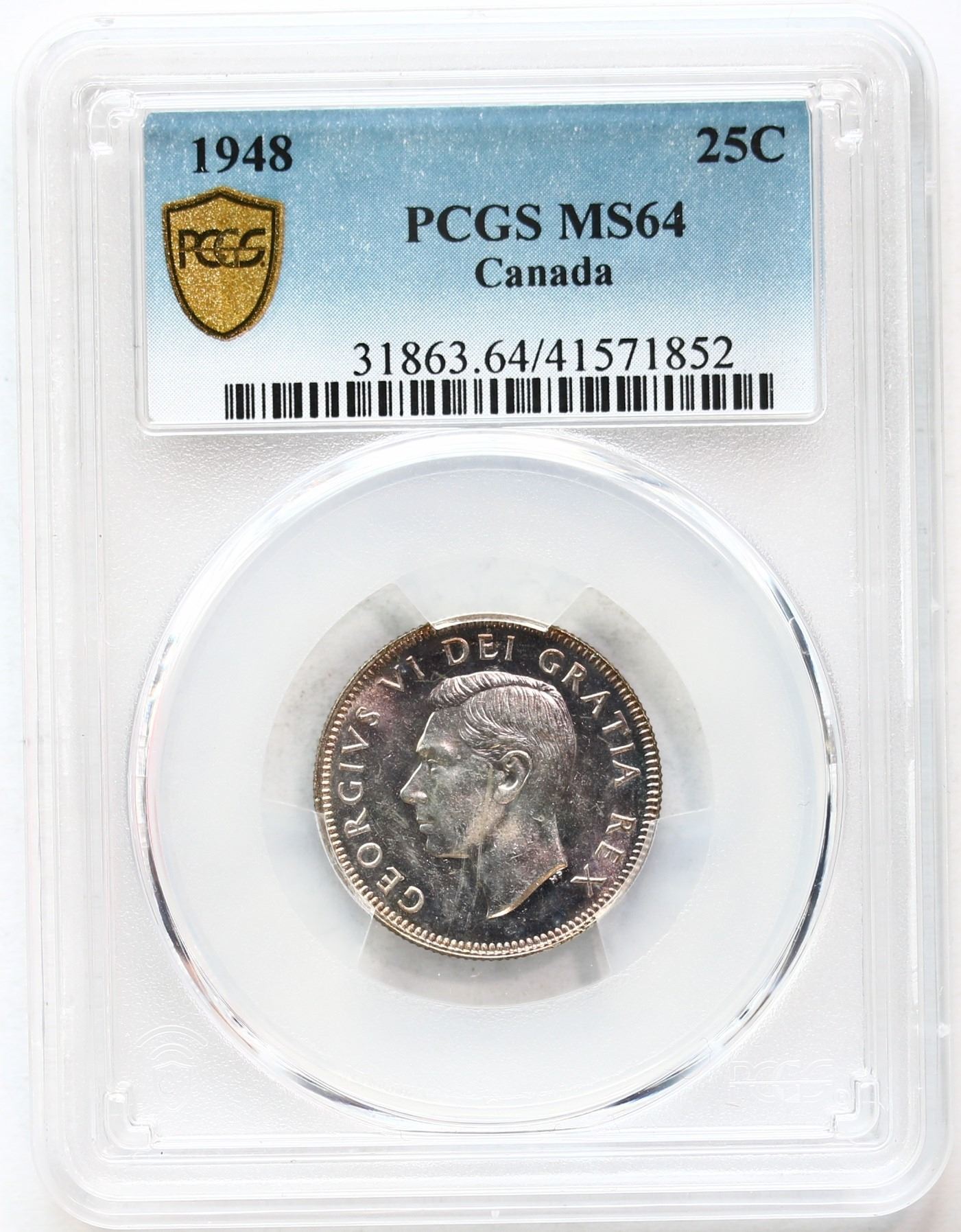 1948 25¢ PCGS Choice Mint State-64 Touch of russet tone around the rims, otherwise brilliant.