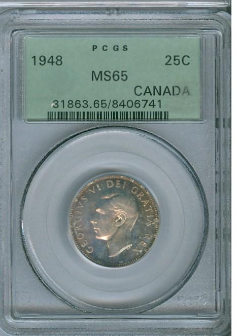 1948 25¢ PCGS MS65. Light russet tone in old green PCGS holder.