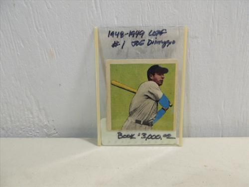 1948-49 LEAF #1 BASEBALL PLAYER CARD JOE DIMAGGIO. CARD TRIMMED. AS SHOWN. VIEW PICTURE FOR DETAIL.