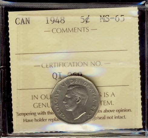 1948 5¢ ICCS MS65, lovely GEM!