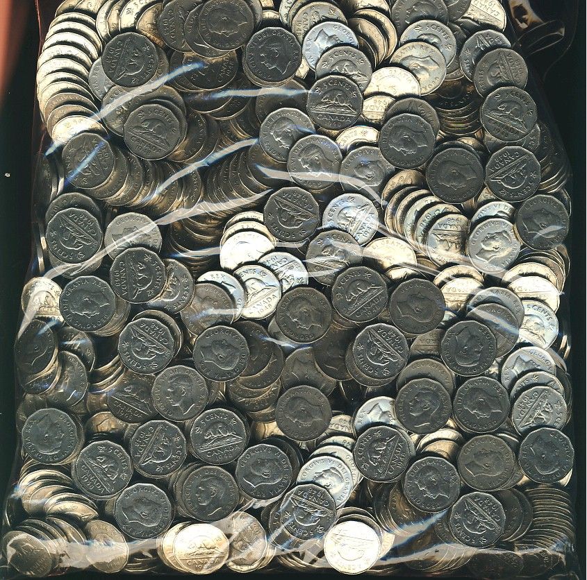 1948 5¢. Lot of 985 pcs VG to EF. A popular date.