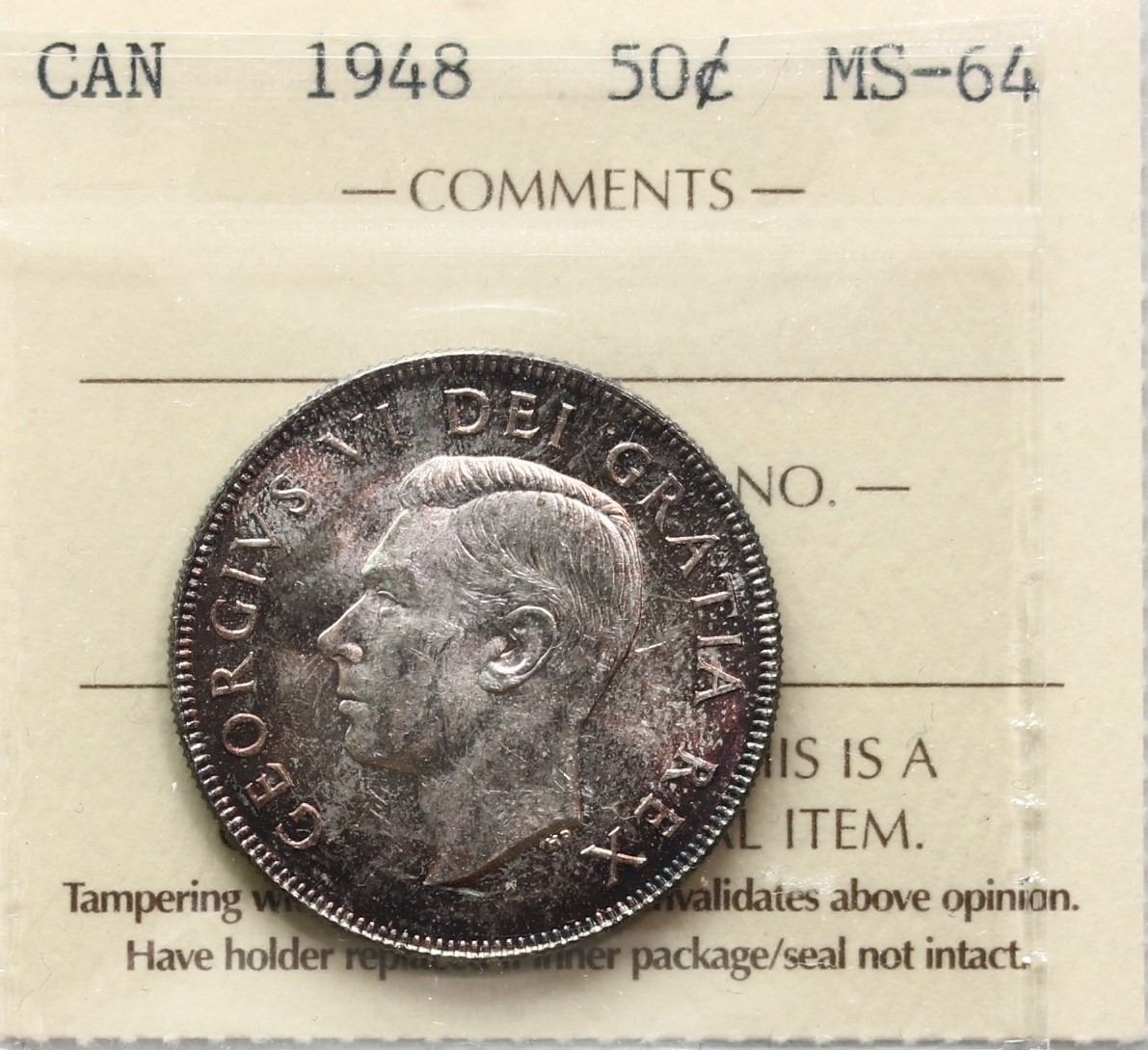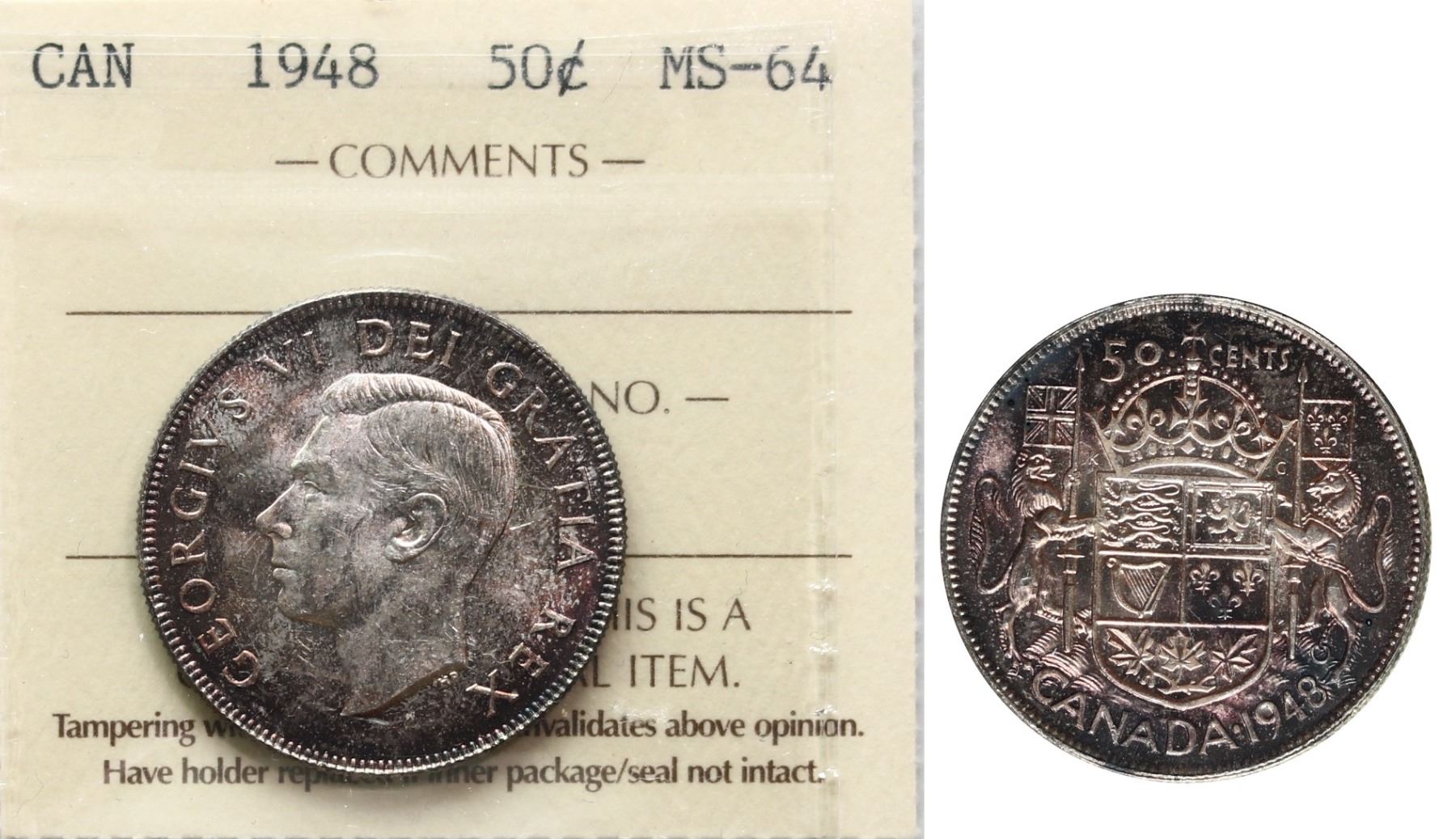 1948 50¢ ICCS Choice Mint State-64 Delicate toning over full underlying lustre. A superior example.