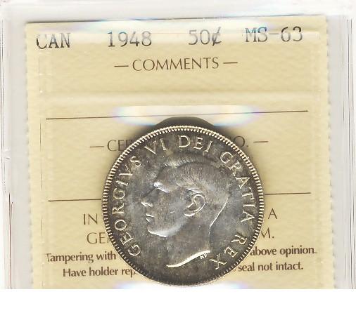 1948 50¢ ICCS MS63 Brilliant and lustrous