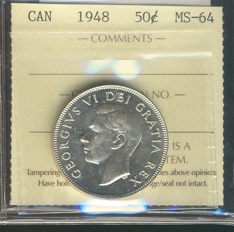 1948 50¢ ICCS MS64. Balst white.