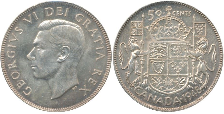 1948 50¢ ICCS MS65. Gem semi key issue with full lustre.