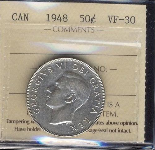 1948 50¢ ICCS VF30. Brilliant, key date.