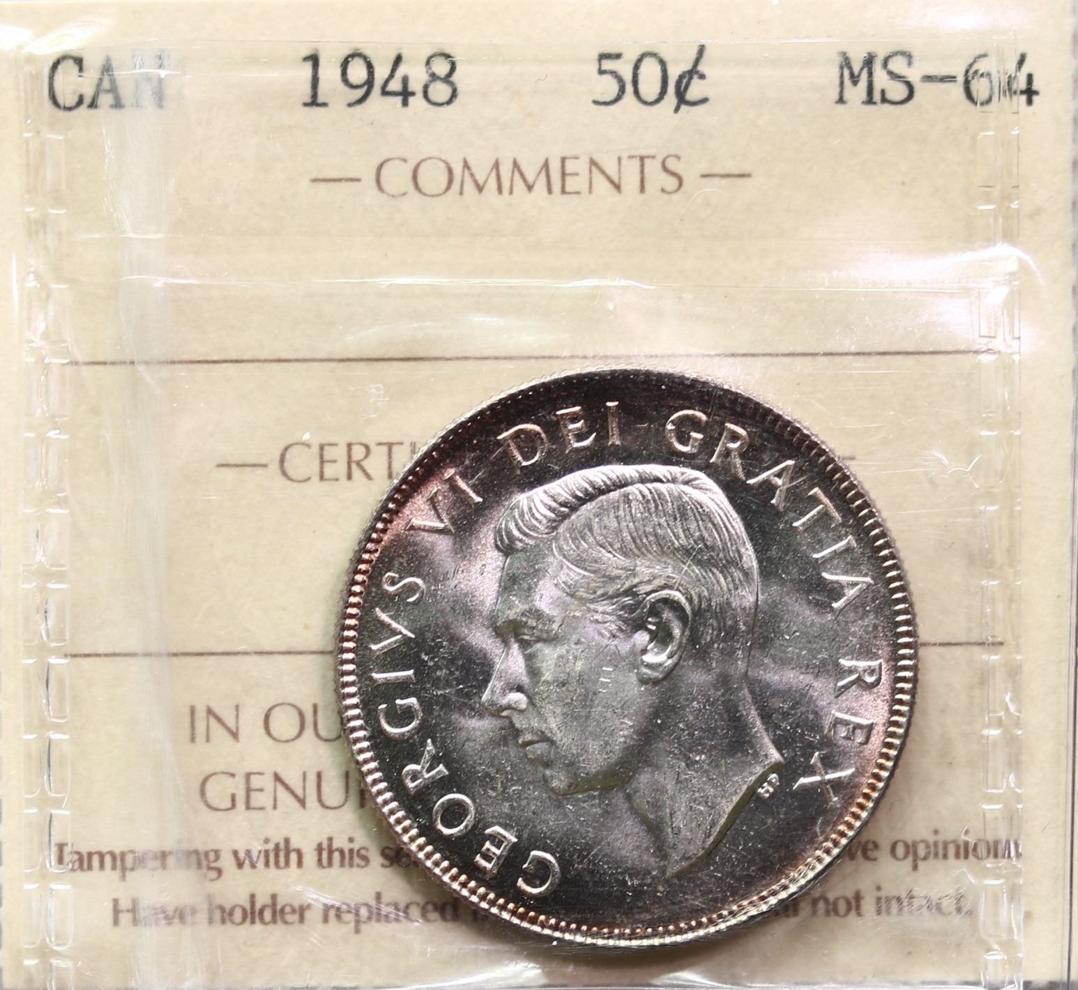 1948 50¢ ICCS Very Choice Mint State-64, Fully brilliant and lustrous. Sought after date.