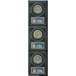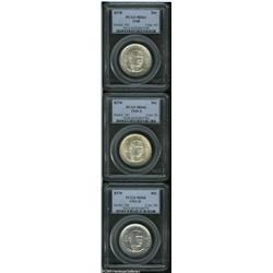 <B>1948 50C Booker T. Washington MS66 PCGS; 1949-S Booker T. Washington MS66 PCGS;</B></I> and a <B>1951-D Booker T. Washington MS66 PCGS,</B></I> the '48-P has a narrow band of peripheral powder blue toning, the '49-S possesses a thin veneer of champagne color, and the '51-D is essentially untoned. 3 Coins Lot:8610