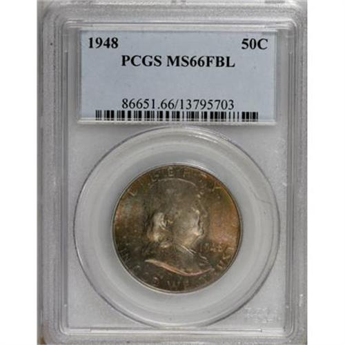 <B>1948 50C MS66 Full Bell Lines PCGS.</B></I> PCGS Population (266/2). NGC Census: (72/4). Numismedia Wsl. Price for NGC/PCGS coin in MS66: $320. (#86651)<BR><BR><b>Shipping:</b> Coins & Currency (<a target="_blank" href="http://www.heritageauctions.com/common/shipping.php">view shipping information</a>)
