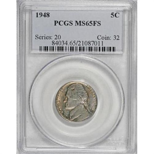 <B>1948 5C MS65 Full Steps PCGS.</B></I> PCGS Population (60/11). NGC Census: (3/6). (#84034)<BR><BR><b>Shipping:</b> Coins & Currency (<a target="_blank" href="http://www.heritageauctions.com/common/shipping.php">view shipping information</a>)