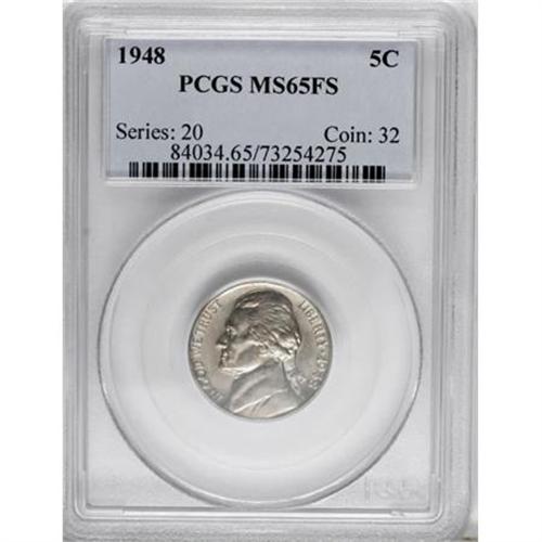 <B>1948 5C MS65 Full Steps PCGS.</B></I> PCGS Population (60/11). NGC Census: (3/6). (#84034)<BR><BR><b>Shipping:</b> Coins & Currency (<a target="_blank" href="http://www.heritageauctions.com/common/shipping.php">view shipping information</a>)