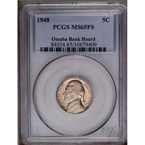<B>1948<5C> MS65 Full Steps PCGS.</B></I> Ex: Omaha Bank Hoard. Tawny-gold and steel-gray hues embrace this shimmering and attentively struck Gem. Post-strike marks are nearly absent. Population: 59 in 65 Full Steps, 12 finer (7/06).