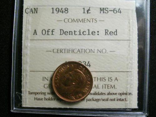 1948 "A" OFF dent. 1¢ ICCS MS64 Red