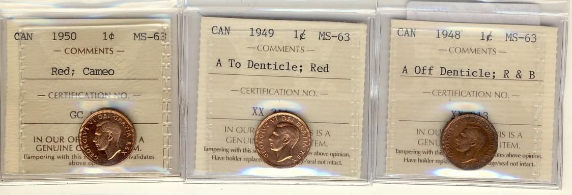1948 A Off, 1949 A to & 1950 Cameo. Lot of 3 coins each with attractive particularity. All coins ICCS MS63RD.