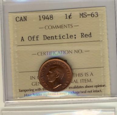 1948 A Off Denticle 1¢ ICCS MS63 Red