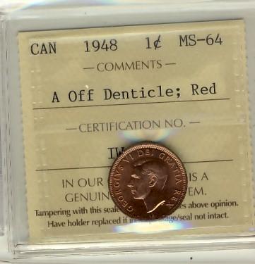 1948 A Off Denticle 1¢ ICCS MS64 Red
