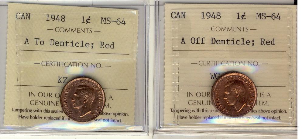 1948 A to & 1948 A Off 1¢ ICCS MS64RD. Lot of two coins including both 1948 varieties.