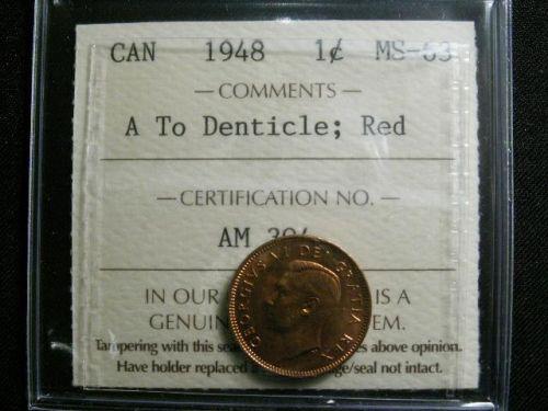 1948 "A" to dent. 1¢ ICCS MS63 Red