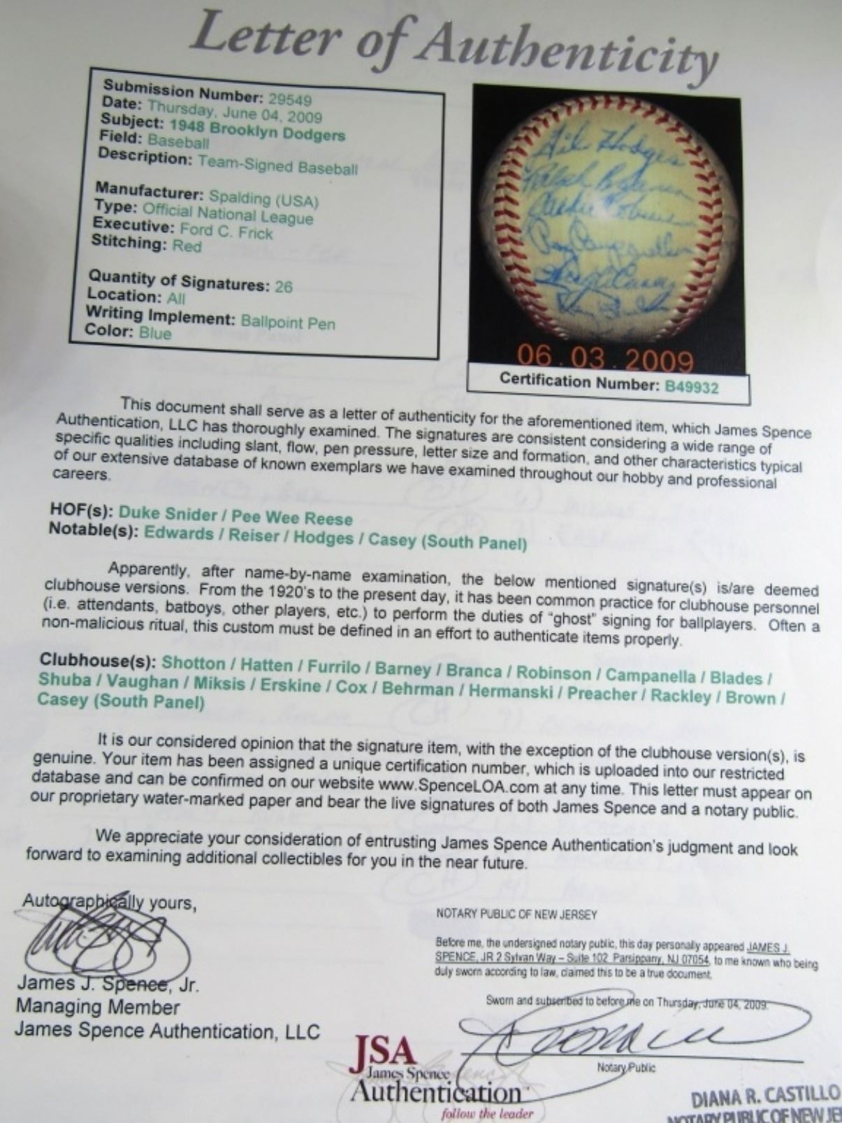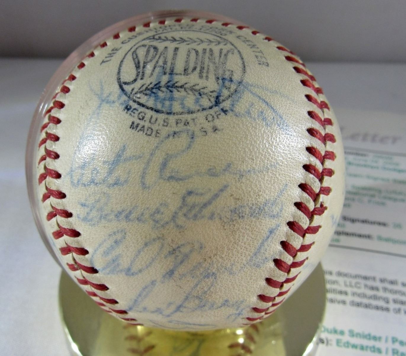 with 26 SIGNATURES - JSA AUTHENTICATED - includes DUKE SNIDER / PEE WEE REESE/ EDWARDS, / REISER / HODGES / CASEY & MORE (SOME DEEMED CLUBHOUSE VERSION SIGNATURES)