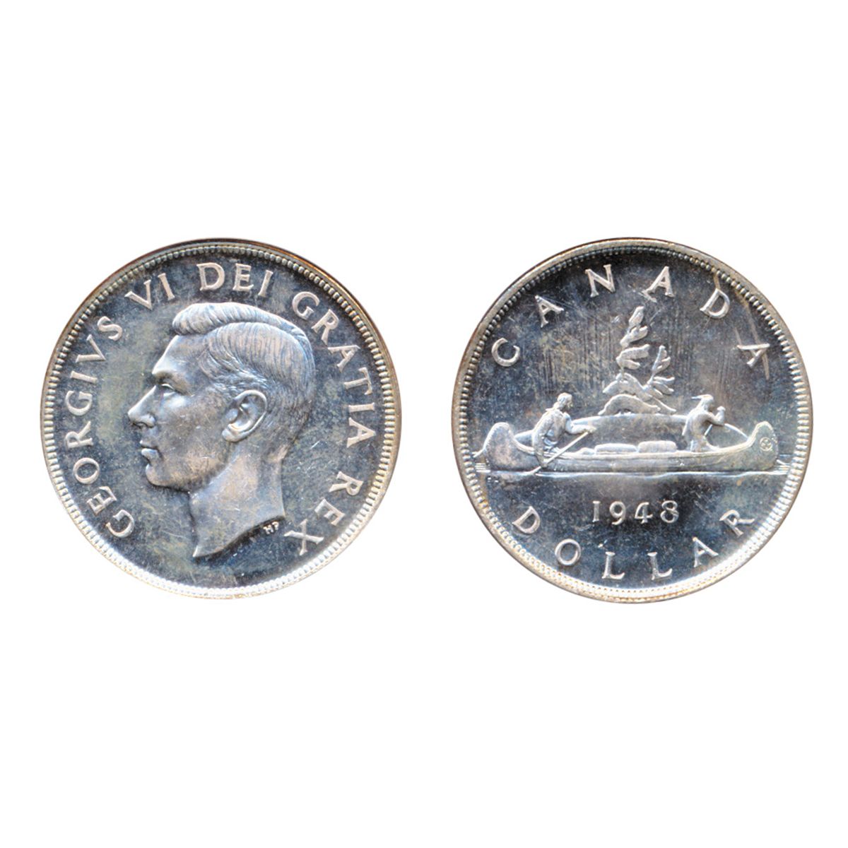 1948. Both ICCS and PCGS graded Mint State-63. A brilliant and lustrous example of the ‘key’ date of the dollar series.