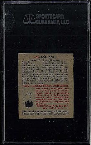 1948 Bowman #45 Bob Doll High Number Card SGC A Authentic