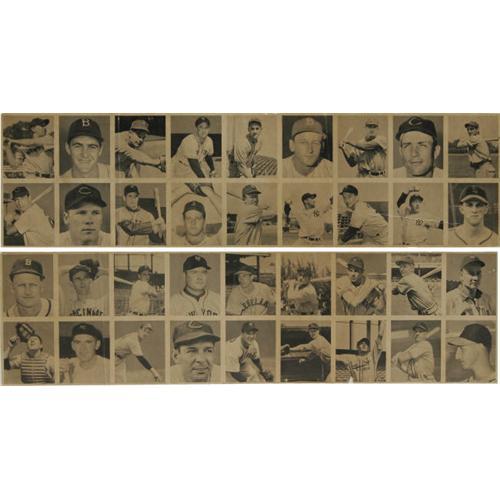 <B>1948 Bowman Baseball Card Uncut Sheets (2).</B></I> The 1948 Bowman issue represents one of the first major issues of the post-war period. The complete set consisted of 48 cards and these two sheets get you three quarters of the way there. Each sheet includes 18 cards. Sheet #1 includes Musial, Thomson, Rigney, and Gordon. Sheet has three creases and some light residue at a few edges on the back. Sheet #2 includes Spahn, Slaughter, Schoendienst, Berra, Feller, Kiner, and Reynolds and has two creases with a small chip at the bottom border. Both examples are VG and have the backs properly printed unlike many of the double printed Bowman sheets available in the Hobby. <BR><BR><B>Important notice:</B> Heritage usually auctions material at the rate of 200-250 lots per hour. On some occasions eBay Live bid software or the Internet may not be able to keep up with the pace of the auction. We recommend placing a realistic absentee bid now as insurance to avoid disappointment. Occasionally the auctioneer may eliminate or reject an eBay Live bid, and the auctioneer may also reopen a lot after the close of the eBay live bidding (usually because we missed an audience bid), and may reject your bid even if it shows you as the winning bidder. By bidding via eBay Live, you agree that Heritage may award the lot to another bidder at its sole discretion under the circumstances described above or any other reasonable circumstances. Since eBay bids are not shown to us until we open the lot on the floor, we treat those bids just like floor bids. In most cases the floor responds before the eBay bid is presented to us, due to Internet lag time, so for consistency we have made it a policy that floor bids are always considered first over tie eBay live bids. Also please note that all Heritage lots purchased through eBay Live carry a 22.5% Buyer's Premium. Please make sure you read the Terms and Conditions before you bid. This lot is being auctioned in conjunction with a live floor auction by Heritage Galleries & Auctioneers. All final auction and invoice information will be supplied by Heritage Galleries & Auctioneers, and all other information should be considered preliminary. Lot:19551 <BR><BR><B>Winning Notification and Billing:</B> After the FINAL session in this auction is complete, Heritage will send e-mail and snail mail invoices. This process normally takes several days. All final auction and invoice information will be supplied by Heritage Galleries & Auctioneers, and all other information should be considered preliminary. <BR><BR>This auction will be conducted on a live auction floor and over the Internet through eBay Live. If you choose to place an absentee bid, please take a moment to <font color='#0000ff'><u><a href='http://pages.ebay.com/liveauctions/help/before/laabsentee.html'>learn how eBay Live absentee bidding works</a></u></font><font color='#000000'>