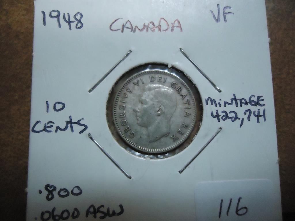 1948 CANADA SILVER 10 CENTS VERY FINE