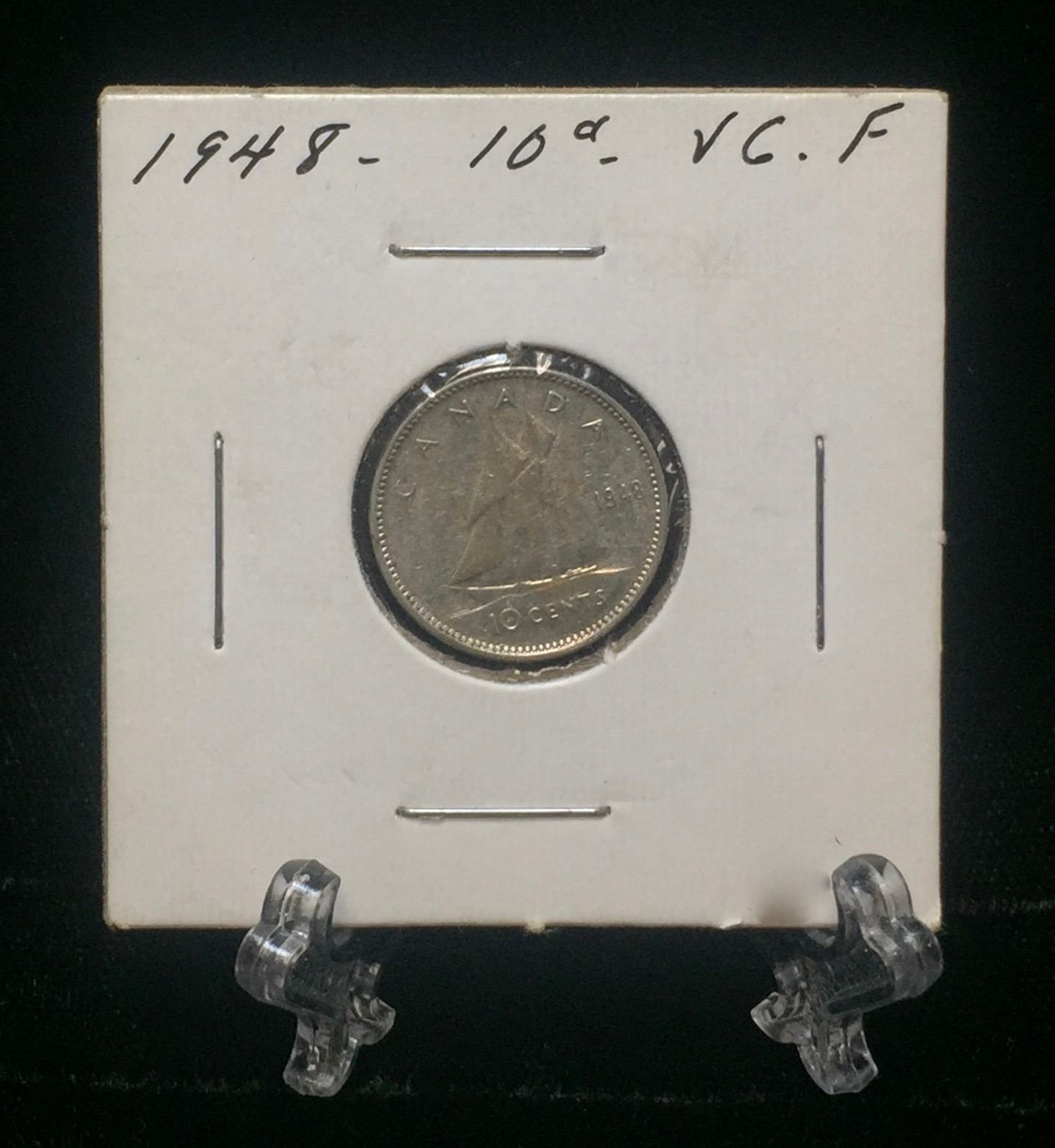 Lot 336; 1948 Canada 10-Cents Silver Coin Very Good-Fine, Legiable Detail, Silver .800, King George VI Effigy, Condition as Pictured