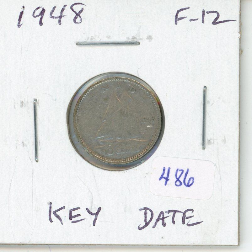 1948 Canadian Silver 10 Cents. F-12. Key Date.