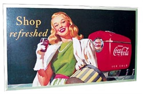 Unusual 23.5"x41" size great graphics, features girl with hat box at fountain counter. Beautiful cond. this is one of the best from a small find that turned up about 5 years ago. Nearly perfect within the border. Only the most minor of any edge wear or border marks. Cond. 9.2-9.5+.