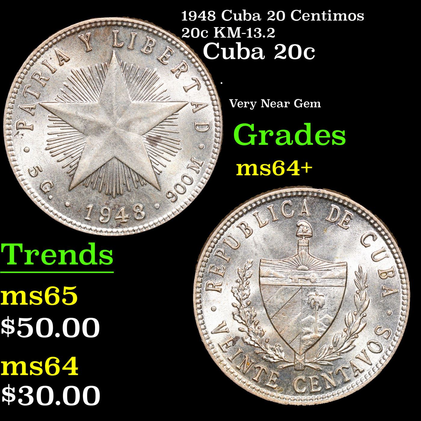 1948 Cuba 20 Centimos 20c KM-13.2 Grades Choice+ Unc.