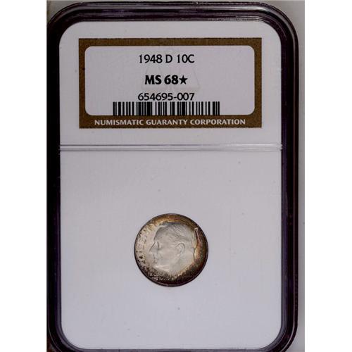 1948-D 10C MS68 S NGC. Vivid sea-green, gold, and ros 1948-D
