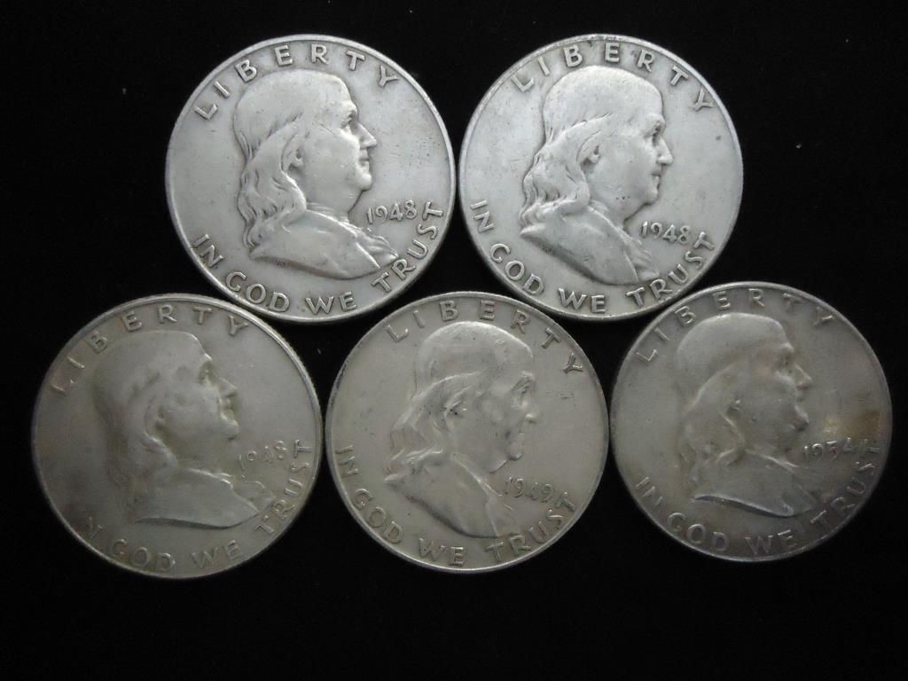 1948-D,48-D,48-D,49-D & 54-S FRANKLIN HALF DOLLARS
