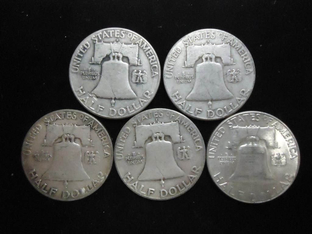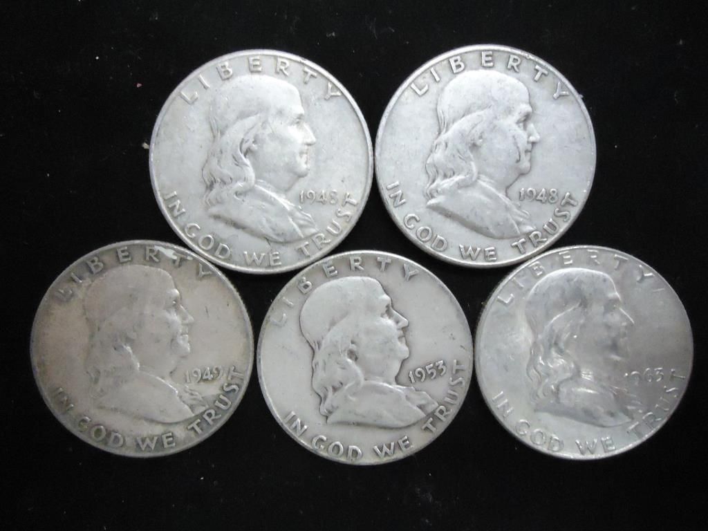 1948-D,48-D,49,53-S & 63-D FRANKLIN HALF DOLLARS
