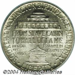 <B>1948-D<50C> Booker T. Washington MS66 PCGS.</B></I> Vividly variegated golden-tan and cobalt-blue patina enriches this shimmering premium Gem. The strike is impressive for the type, and the surfaces are refreshingly without handling marks. E PLURIBUS UNUM is lightly die doubled. As of (6/04), PCGS has not certified any examples above MS66, which makes the present piece an excellent candidate for a competitive Registry Set.<BR><I>From the JFS Collection, the #1 All-Time PCGS Registry Set.</B></I> <BR><BR><B>Important notice:</B> Heritage usually auctions material at the rate of 200-250 lots per hour. On some occasions eBay Live bid software or the Internet may not be able to keep up with the pace of the auction. We recommend placing a realistic absentee bid now as insurance to avoid disappointment. Occasionally the auctioneer may eliminate or reject an eBay Live bid, and the auctioneer may also reopen a lot after the close of the eBay live bidding (usually because we missed an audience bid), and may reject your bid even if it shows you as the winning bidder. By bidding via eBay Live, you agree that Heritage may award the lot to another bidder at its sole discretion under the circumstances described above or any other reasonable circumstances. Since eBay bids are not shown to us until we open the lot on the floor, we treat those bids just like floor bids. In most cases the floor responds before the eBay bid is presented to us, due to Internet lag time, so for consistency we have made it a policy that floor bids are always considered first over tie eBay live bids. Also please note that all Heritage lots purchased through eBay Live carry a 20% Buyer's Premium. Please make sure you read the Terms and Conditions before you bid. </span></font></tr></table></td></tr></table>