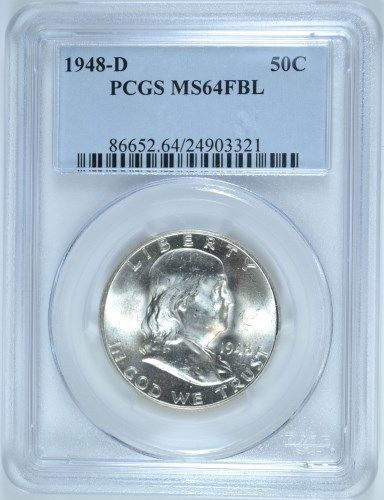 1948-D FRANKLIN HALF DOLLAR, PCGS MS-64 FBL WHITE